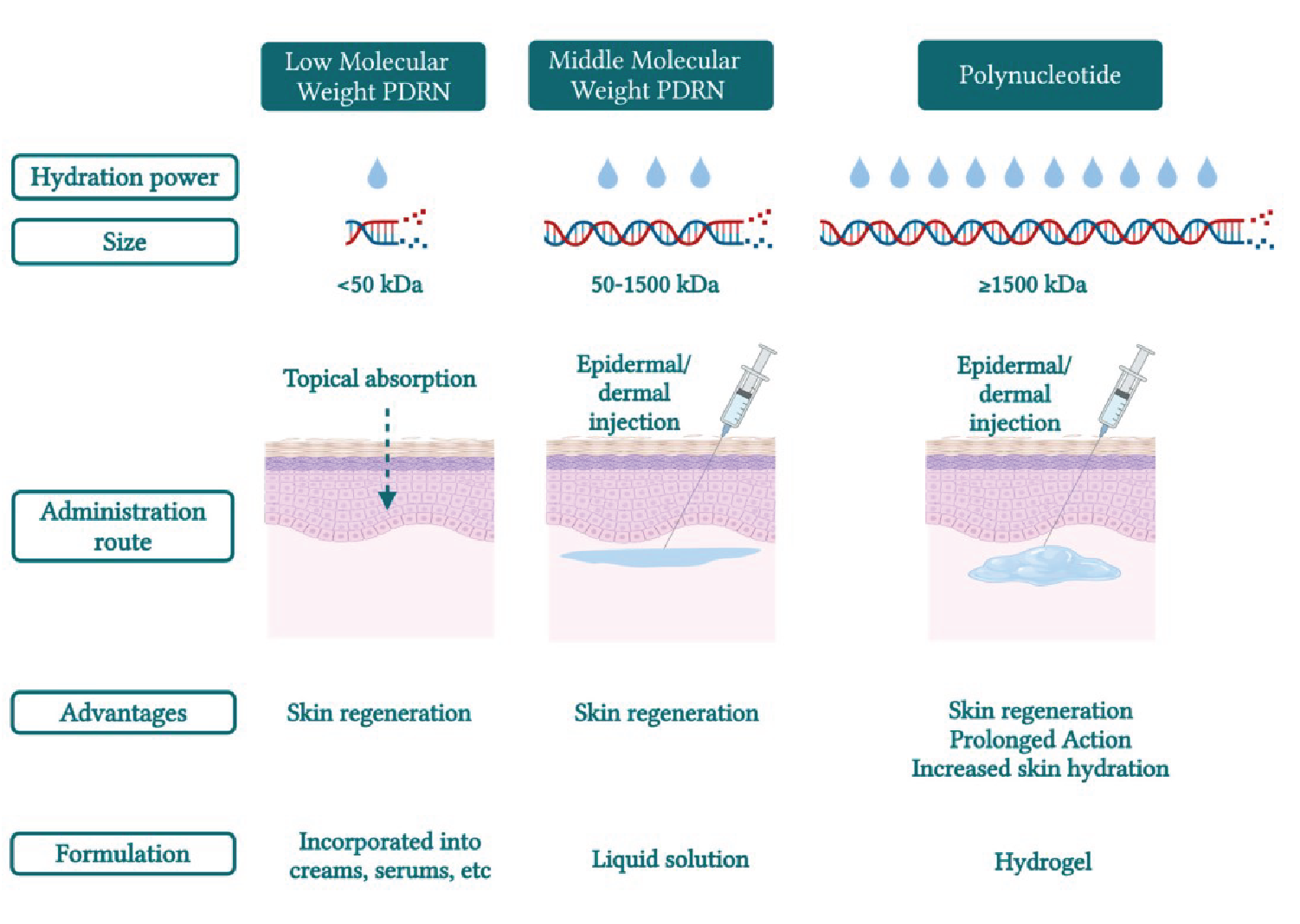 Karena PDRN adalah segmen DNA dengan berat molekul rendah, ia memiliki peluang lebih besar untuk menembus lapisan luar kulit (epidermis) dibandingkan molekul besar lainnya. -