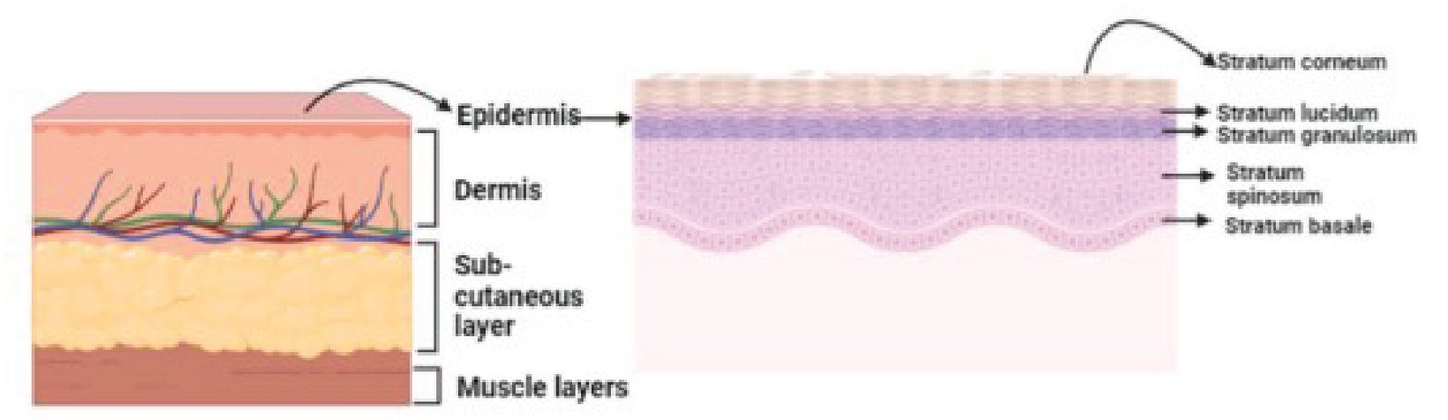 Fungsi penghalang kulit utama sebagian besar diatribusikan pada stratum korneum. Lapisan terluar ini terdiri dari sel-sel mati yang padat (korneosit) dan bertindak sebagai penghalang fisik, lingkungan, dan mikroba yang tangguh. Stratum korneum berfungsi sebagai penghalang yang efektif yang membatasi penetrasi sebagian besar obat, menjadikannya tantangan untuk menyeberangi kulit.