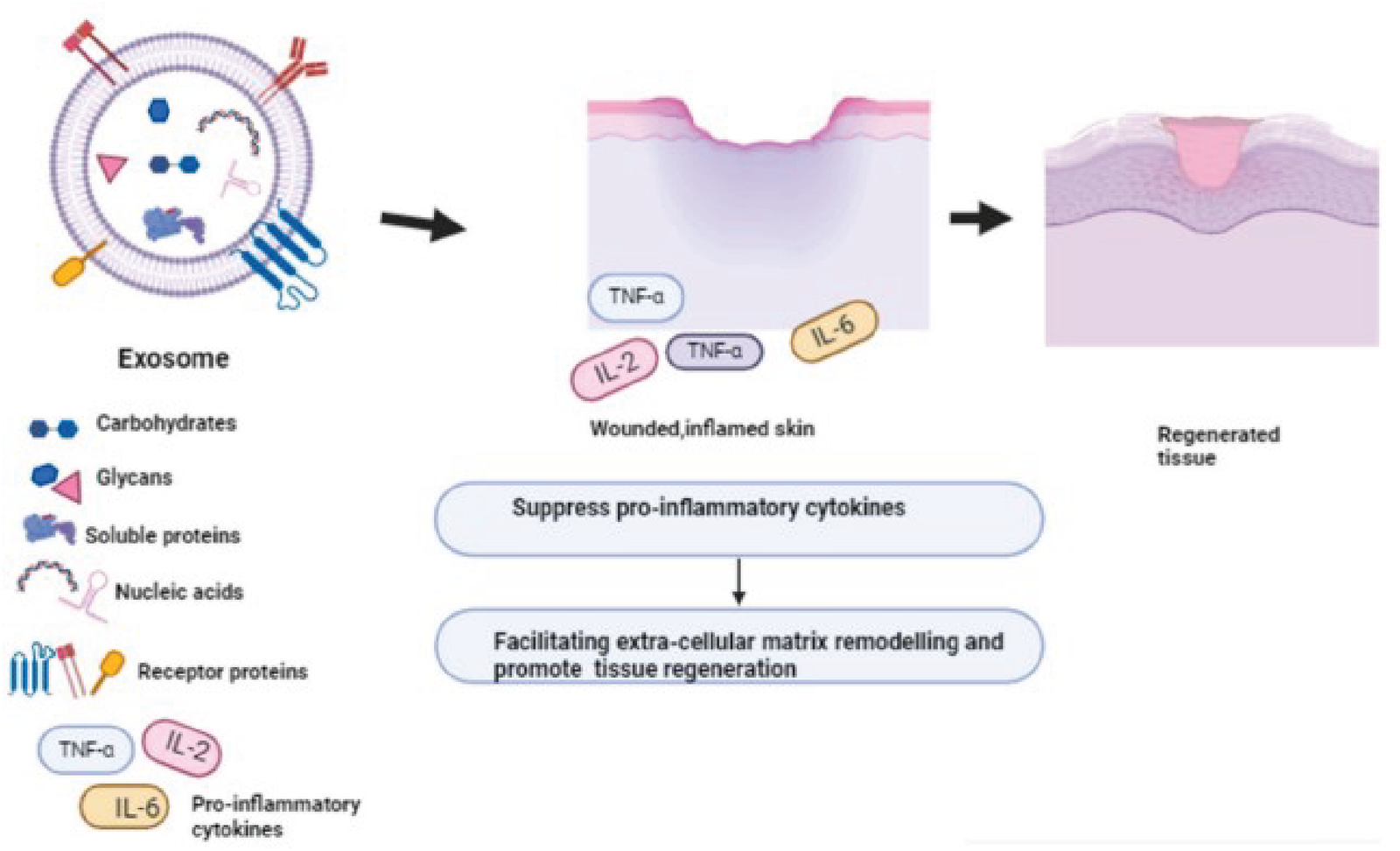 Eksosom merupakan kontributor berpengaruh dalam proses seperti angiogenesis, proliferasi sel, dan modulasi peradangan, menjadikannya menarik untuk terapi penyembuhan luka. -