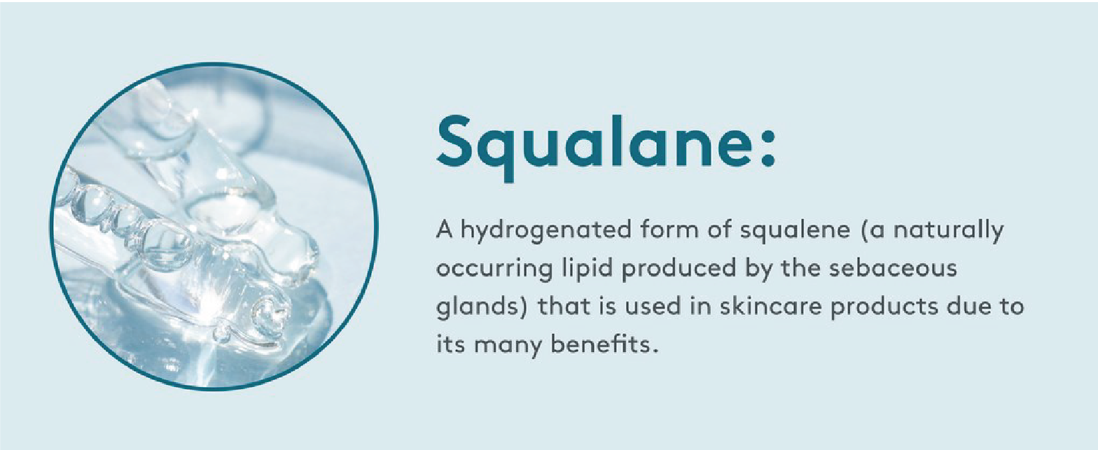 Squalane adalah senyawa alami (Squalene) yang berasal dari hewan yang telah mengalami proses kimia (hidrogenasi) sehingga tidak mudah rusak. Squalene sebenarnya secara alami diproduksi oleh tubuh secara alami, namun akibat pertambahan usia, paparan polusi dan sinar matahari, Squalene dapat berkurang lebih cepat dalam kulit. Penggunaan squalane dianggap menjadi solusi karena bisa menggantikan squalene yang hilang dalam tubuh.